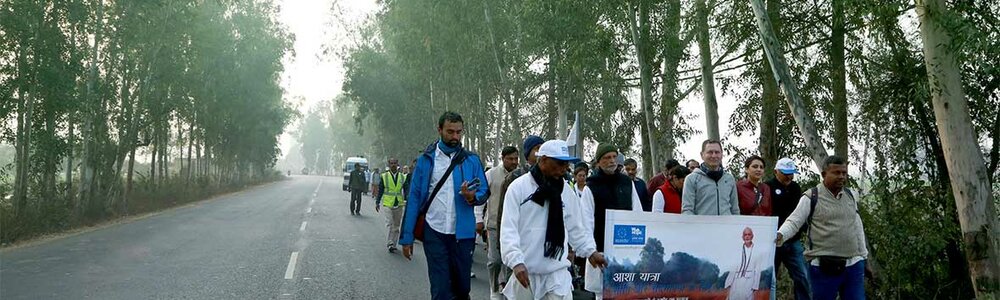 In februari heb ik tien dagen deelgenomen aan de Walk of Hope in India. De Walk of Hope is een ‘padayatra’, een pelgrimage te voet, voor vrede en harmonie, geleid door Sri M. De Walk beslaat 7.500 kilometer van Kanyakumari in de zuidelijkste punt van India tot Srinagar in Kashmir in het hoge noorden en doorkruist met een gemiddelde van 15 tot 20 kilometer per dag in 500 dagen 11 Indiase staten. Gestart op 12 januari 2015, wordt het eindpunt naar verwachting bereikt in de eerste week van mei 2016.